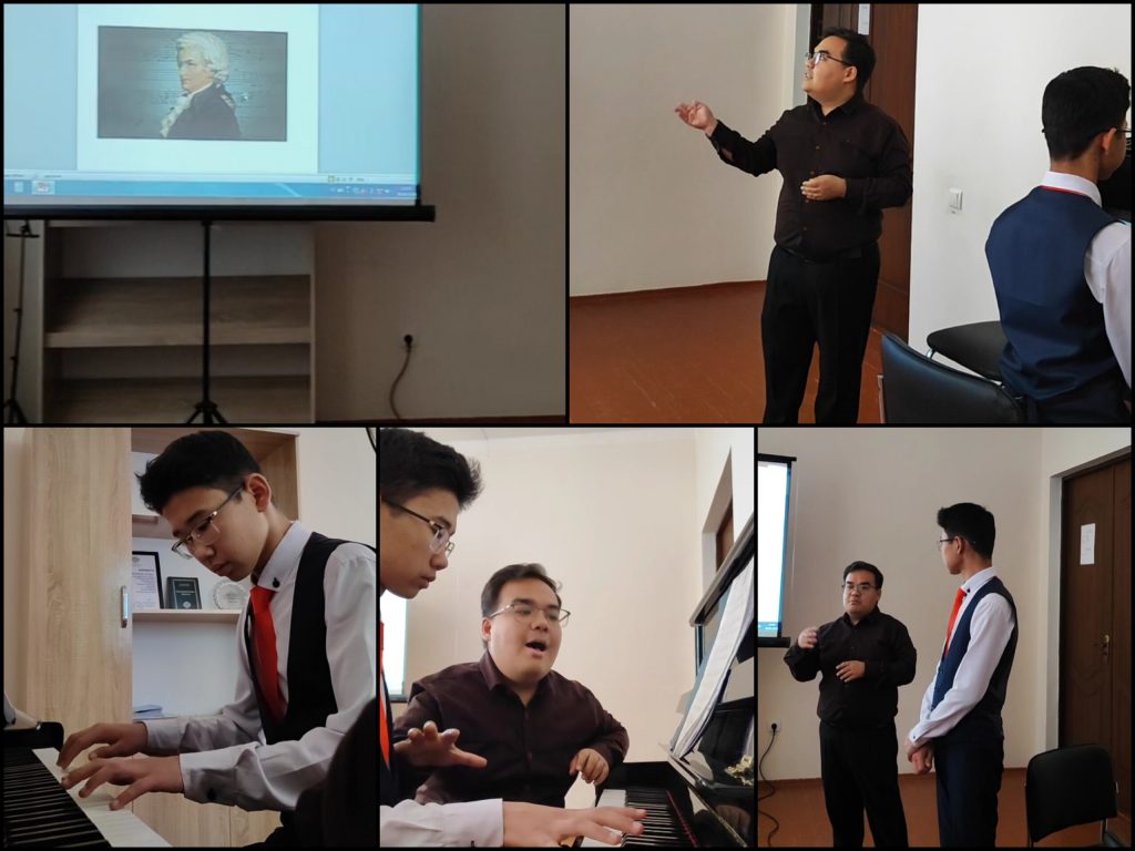 Usı jıldıń 30-aprel kúni Ulıwma fortepiano páni oqıtıwshısı Islambek Xamidov tárepinen “Iri formadaǵı shıǵarmanı úyretiw” temasında 9-klass oqıwshısı menen ótkerilgen “Ashıq sabaǵı”nan kórinis.