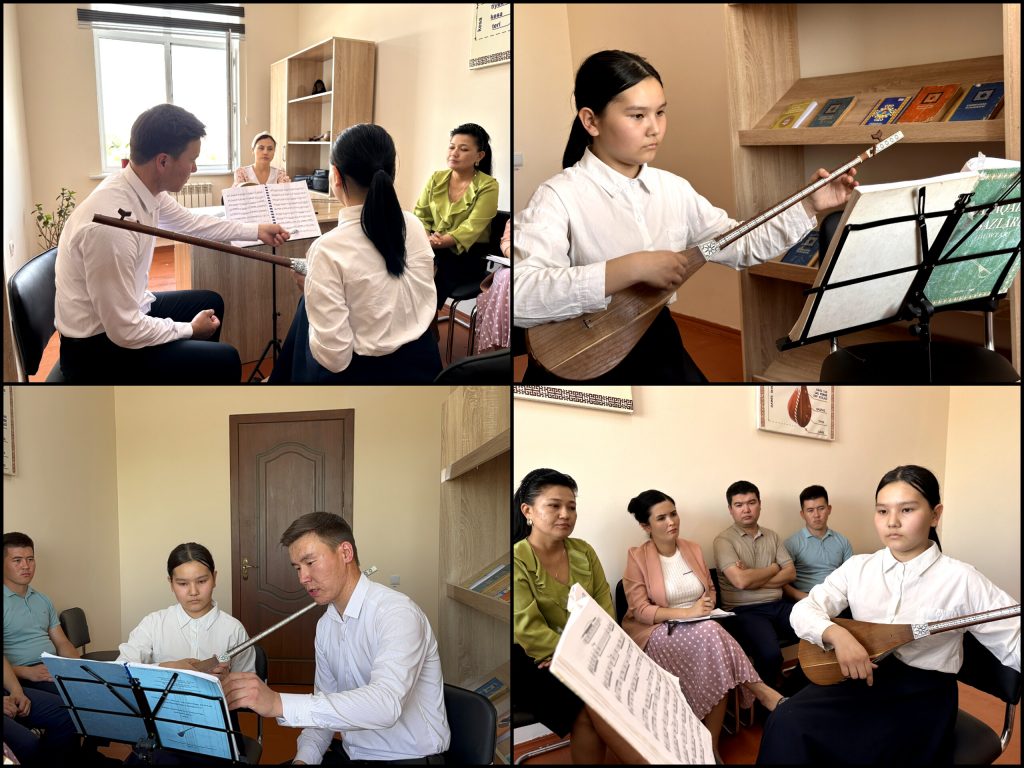 Usı jıldıń 6-may kúni “Milliy saz atqarıwshılıǵı” baǵdarınıń Alamoynaq duwtarı sázendeligi qánigelik klası oqıtıwshısı Salyev Xasılbek tárepinen 7-klass oqıwshısı menen ótkerilgen “Ashıq sabaǵı”nan kórinis.