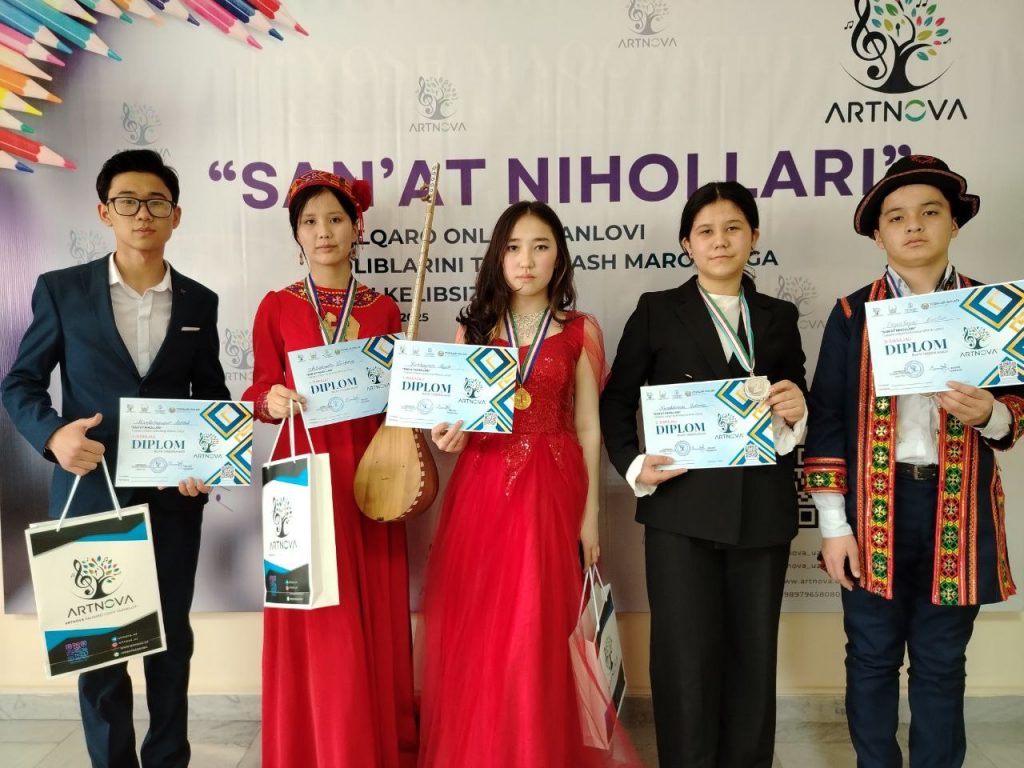 Usı jıldıń 28-fevral kúni Tashkent qalasında “ARTNOVO” – “San’at nihollari” Xalıqaralıq tańlawınıń sıylıqlaw máresimi bolıp ótti. Bunda Mektep-internatı oqıwshıları Akademiyalıq vokal, Baqsıshılıq hámde Milliy saz atqarıwshılıǵı baǵdarları boyınsha sıylı 1,2,3-orınlardı jeńip alıwǵa eristi.