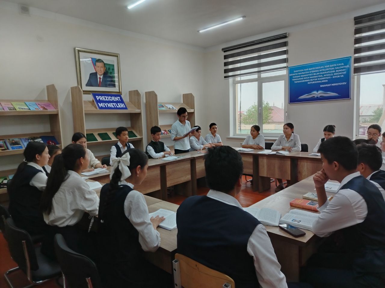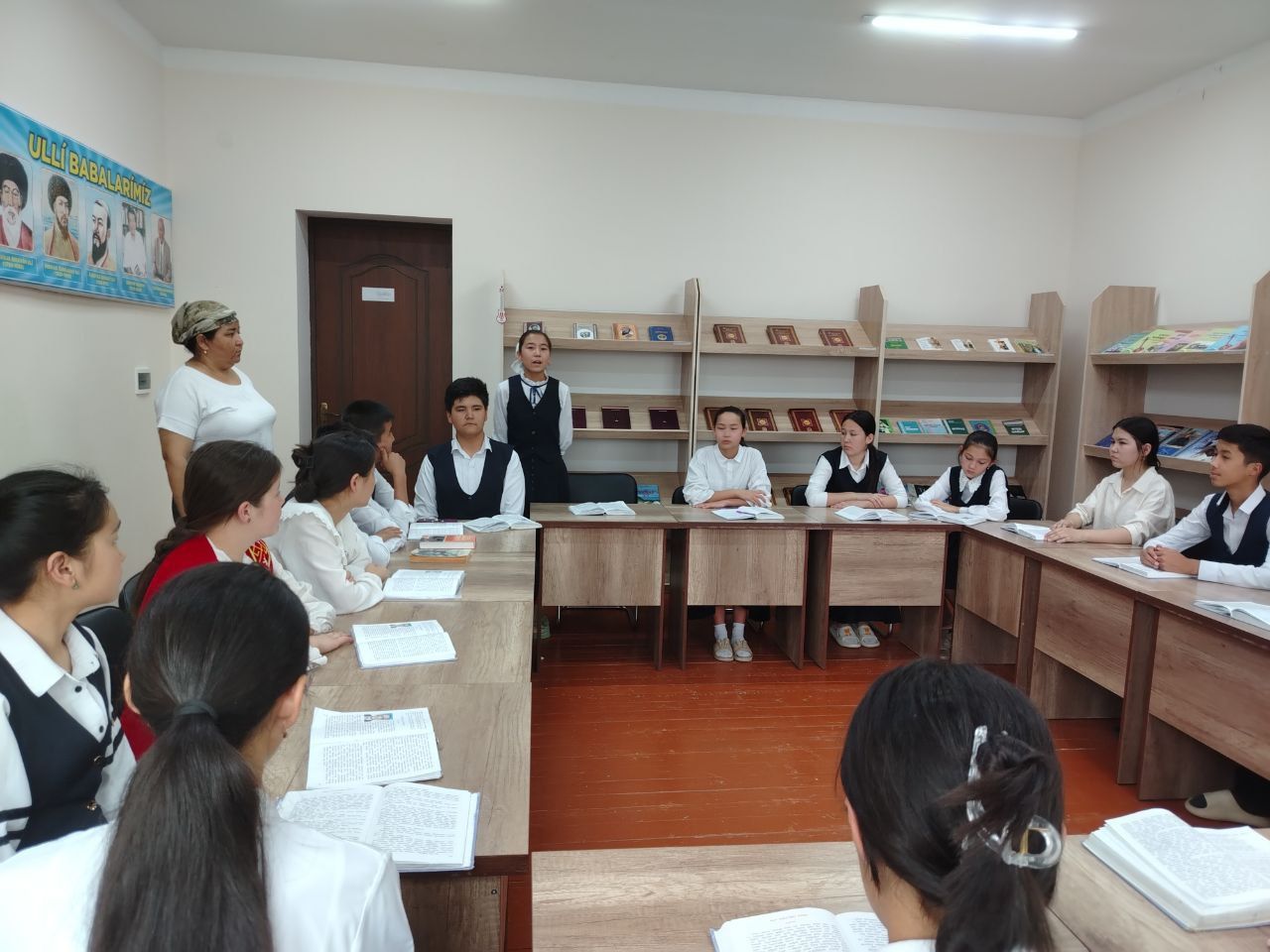 OPERA KÓRKEM ÓNERINE QÁNIGELESTIRILGEN MEKTEP-INTERNATÍ. Usı jıldıń 7-may kúni 8-klass oqıwshılarna Qaraqalpaq ádebiyatınıń qos bayteregi Ózbekistan Qaharmanı, ataqlı shayır Ibrayım Yusupov hámde Ózbekistan Qaharmanı, Ózbekstan hám Qaraqalpaqstan xalıq jazıwshısı Tólepbergen Qayıpbergenovtıń tuwılǵanına 96-jıl tolıw múnasibeti menen ádebiy keshe ótkerildi. Mektep-internatı málimleme orayı 2025 jıl.