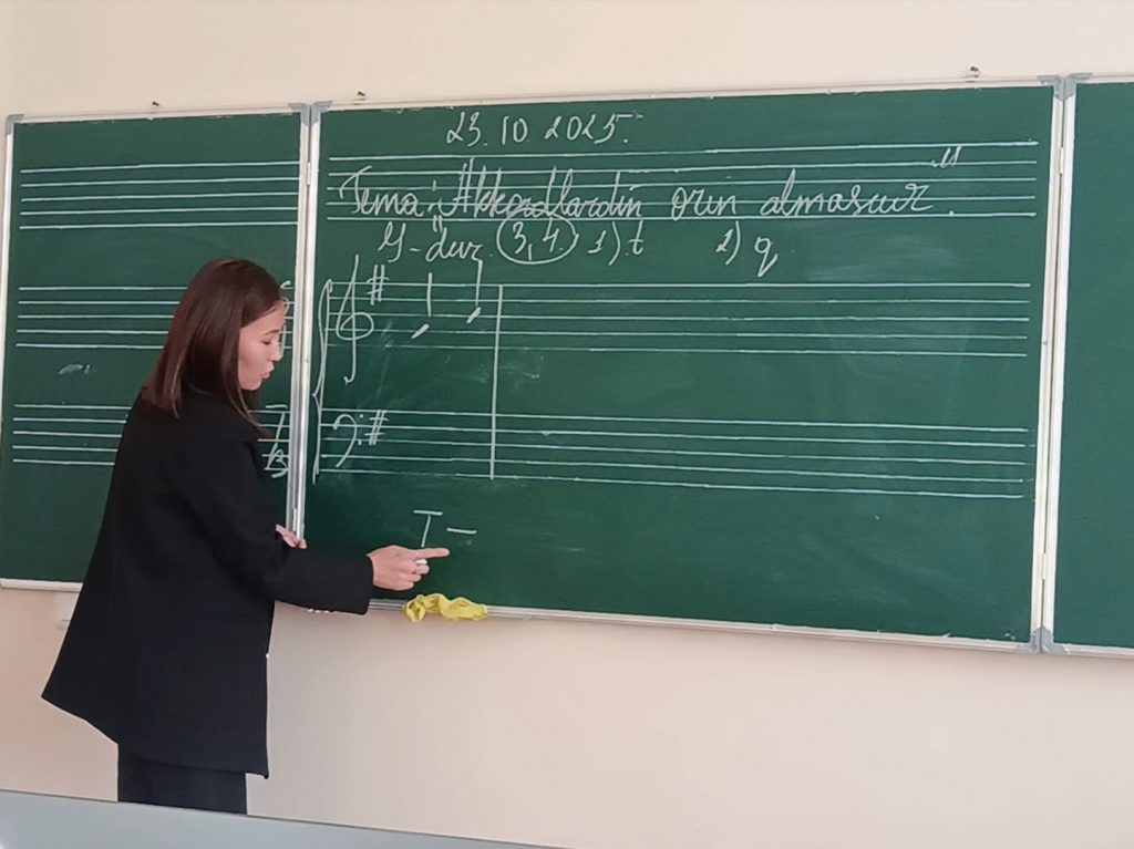 Usı jıldıń 23-oktyabr kúni mektep-internatı muzıka teoriyası páni oqıtıwshısı Shaxsanem Aóezova tárepinen ótkerilgen 9-klass oqıwshıları ushın garmoniya páninen ótkerilgen “Ashıq sabaǵı”nan qısqasha kórinis.