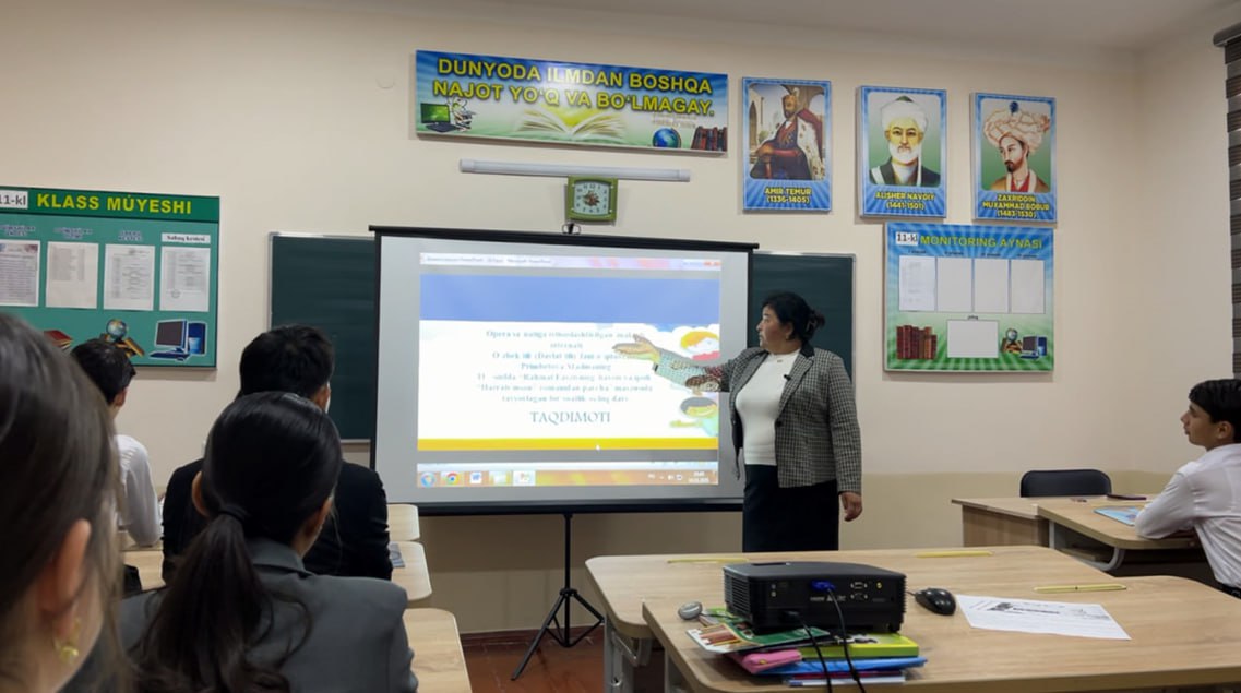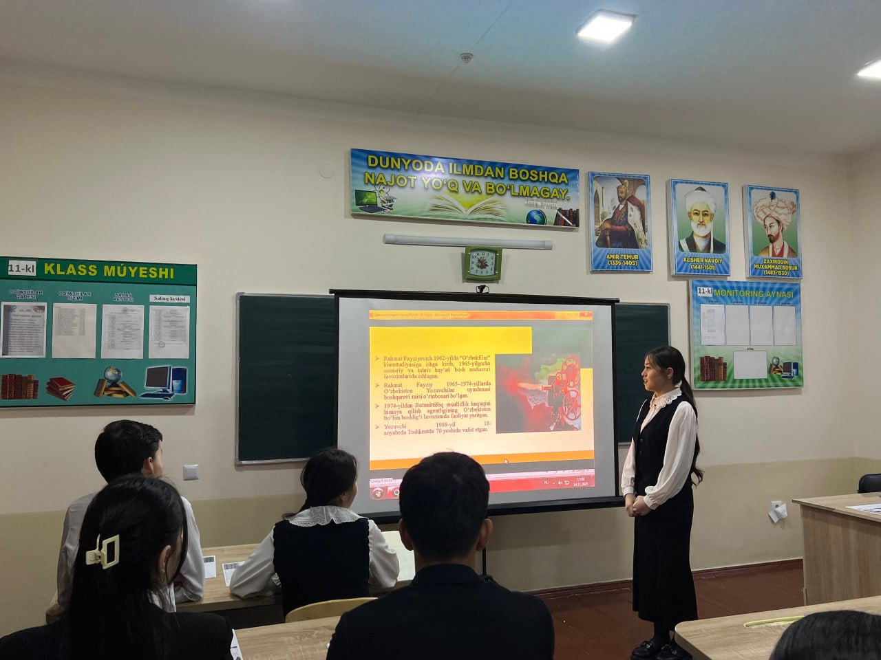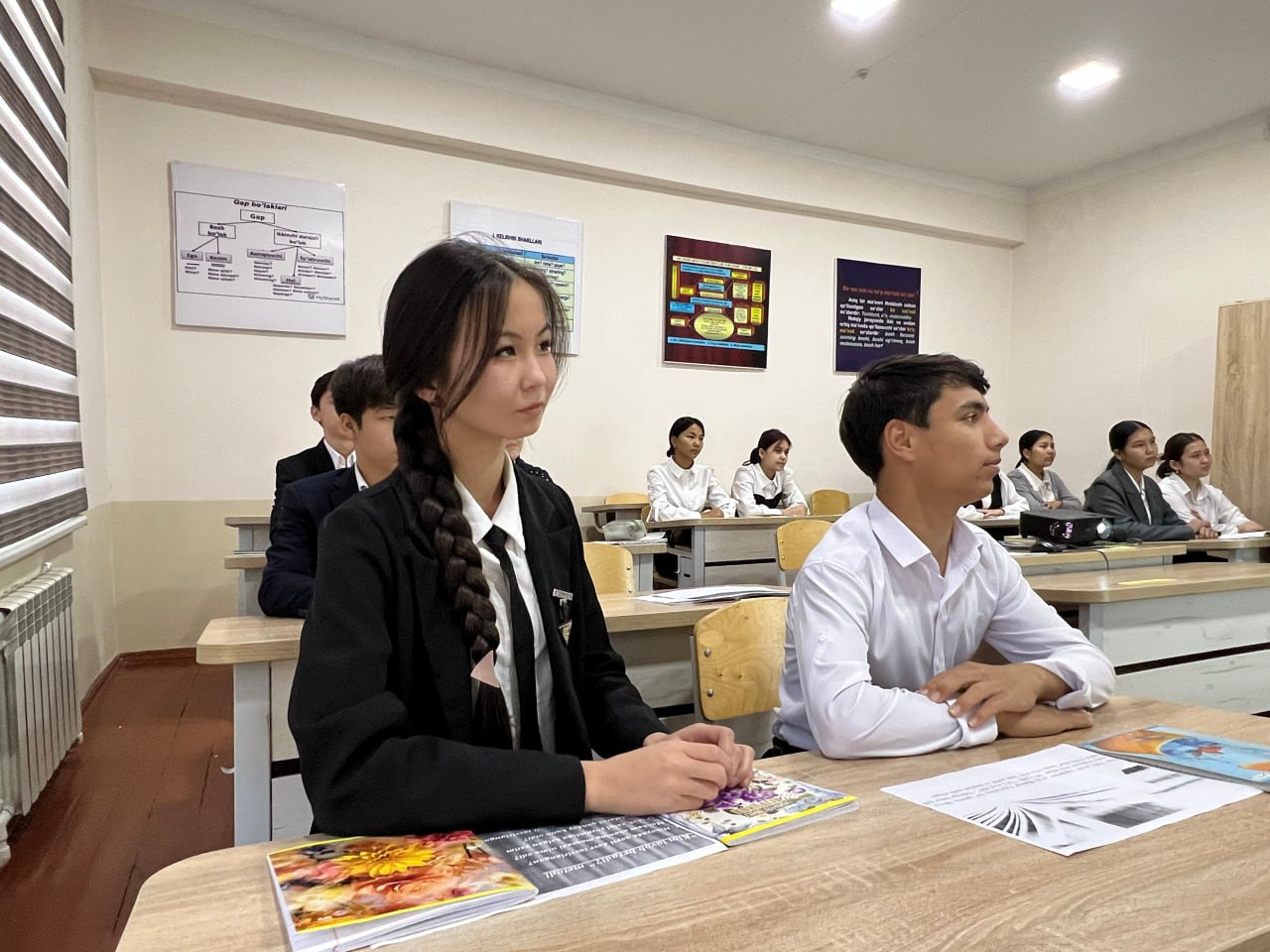 Usı jıldıń 15-noyabr kúni Ózbek tili páninen ótkerilgen “Ashıq sabaǵı”nan foto kórinis.