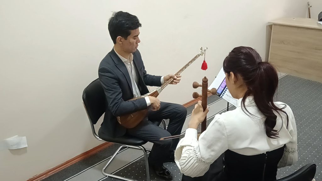 Usı jıldıń 11-dekabr kúni Mektep-internatı “Saz atqarıwshılıǵı (milliy)” baǵdarı baqsı ǵırjek qánigelik klası oqıtıwshısı Berdibay Artıqbaev tárepinen “Koncertmeysterlik ámeliyatı” páninen “Quramalı forshlaklar ústinde islew” temasında 11-klass oqıwshısı menen ótkerilgen “Ashıq sabaǵı”nan kórinis.