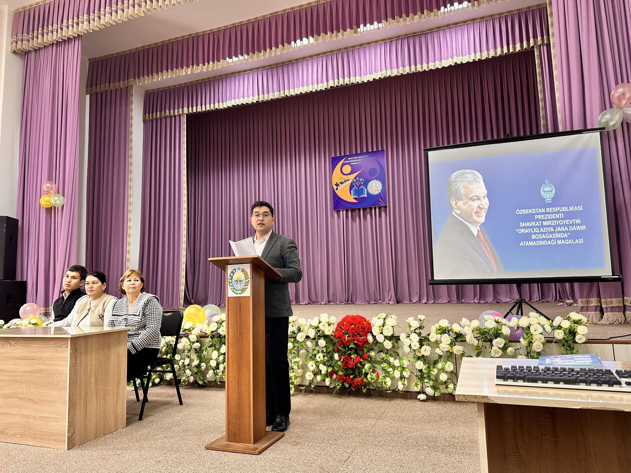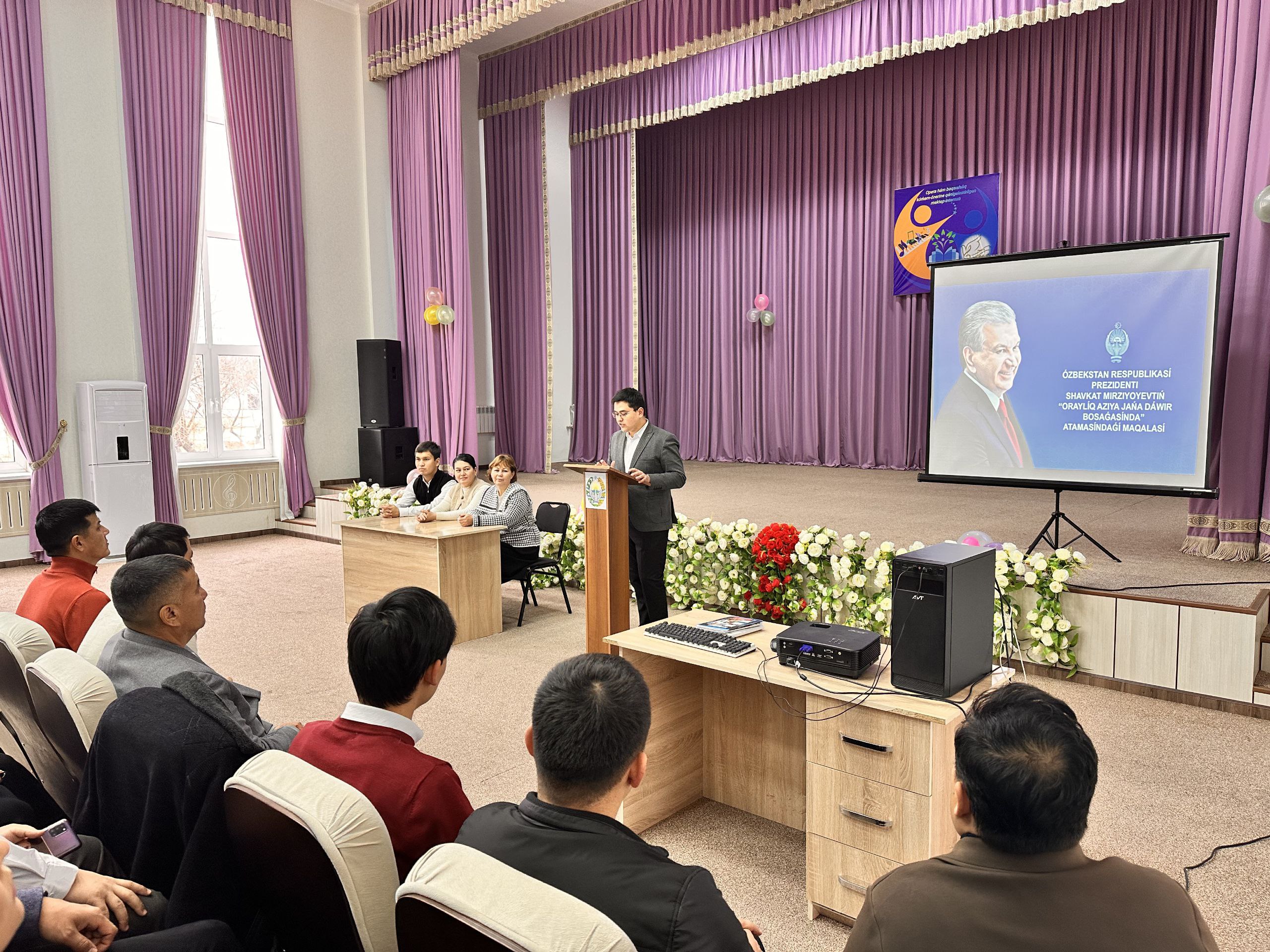 Usı jıldıń 12-dekabr kúni Ózbekistan Respublikası Prezidentiniń 13-noyabr kúngi “Oraylıq Aziya jańa dáwir bosaǵasında” atamasindaǵı maqalasın mektep-internatında islewshi xızmetkerler arasında keń túrde túsinik jumısların Kásiplik awqamı baslanǵısh shólkemi basshısı hám mektep-internati administraciyası tárepinen alıp barıldı.
