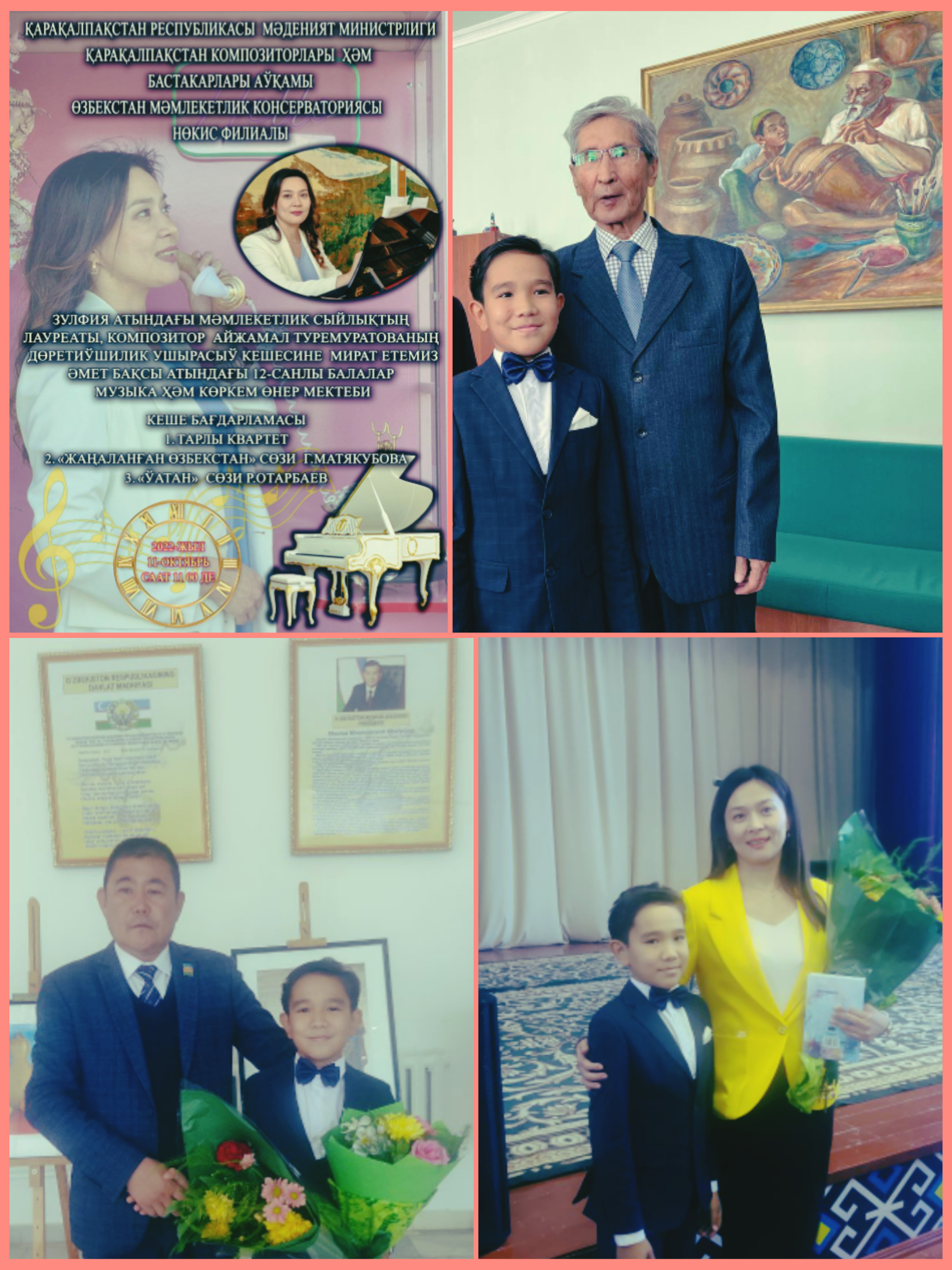 Mektep-internatınıń 6-klass oqıwshısı dóretiwshilik ushırasıw keshesine qatnastı hám kompozitor dóretken muzıkasına qosıqtı atqarıp, inam etti (11.10.2022).