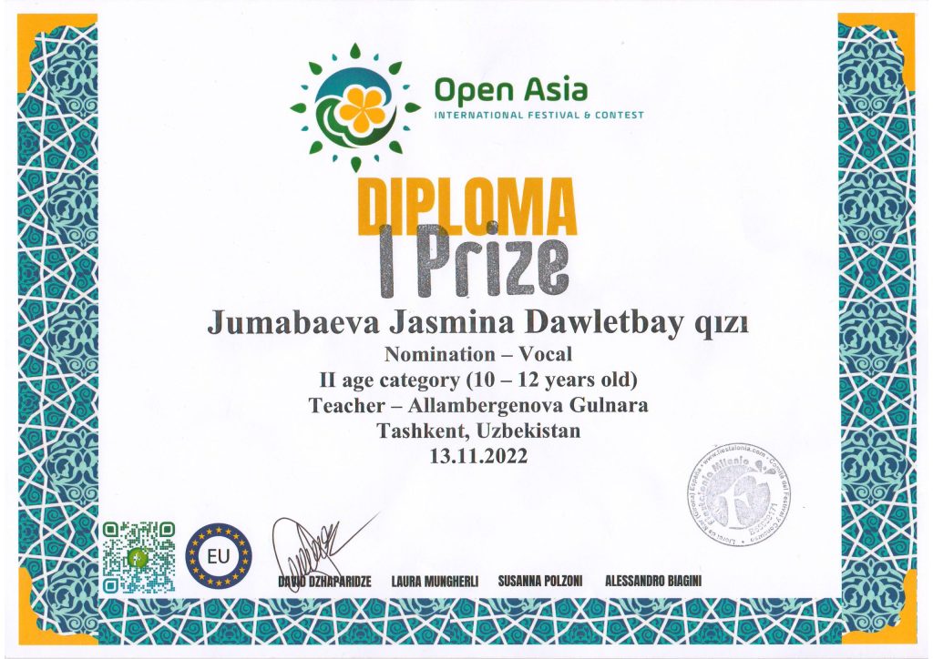 Xaılqara “OPEN ASIA” FIESTALONIA MILENIO (Ispaniya) tańlawınan kelgen minnetdarshılıq xatı