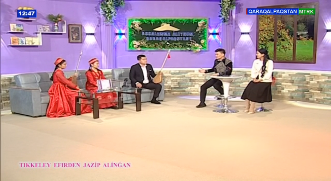 Преподаватель школы интернета по направленияю «Баксы(жырау)» Өткирбай Азирбаев со своими учениками был в НТРК Каракалпакистана «Ассалаума алейкум Қарақалпақстан»не от 19-сентября текущего года.