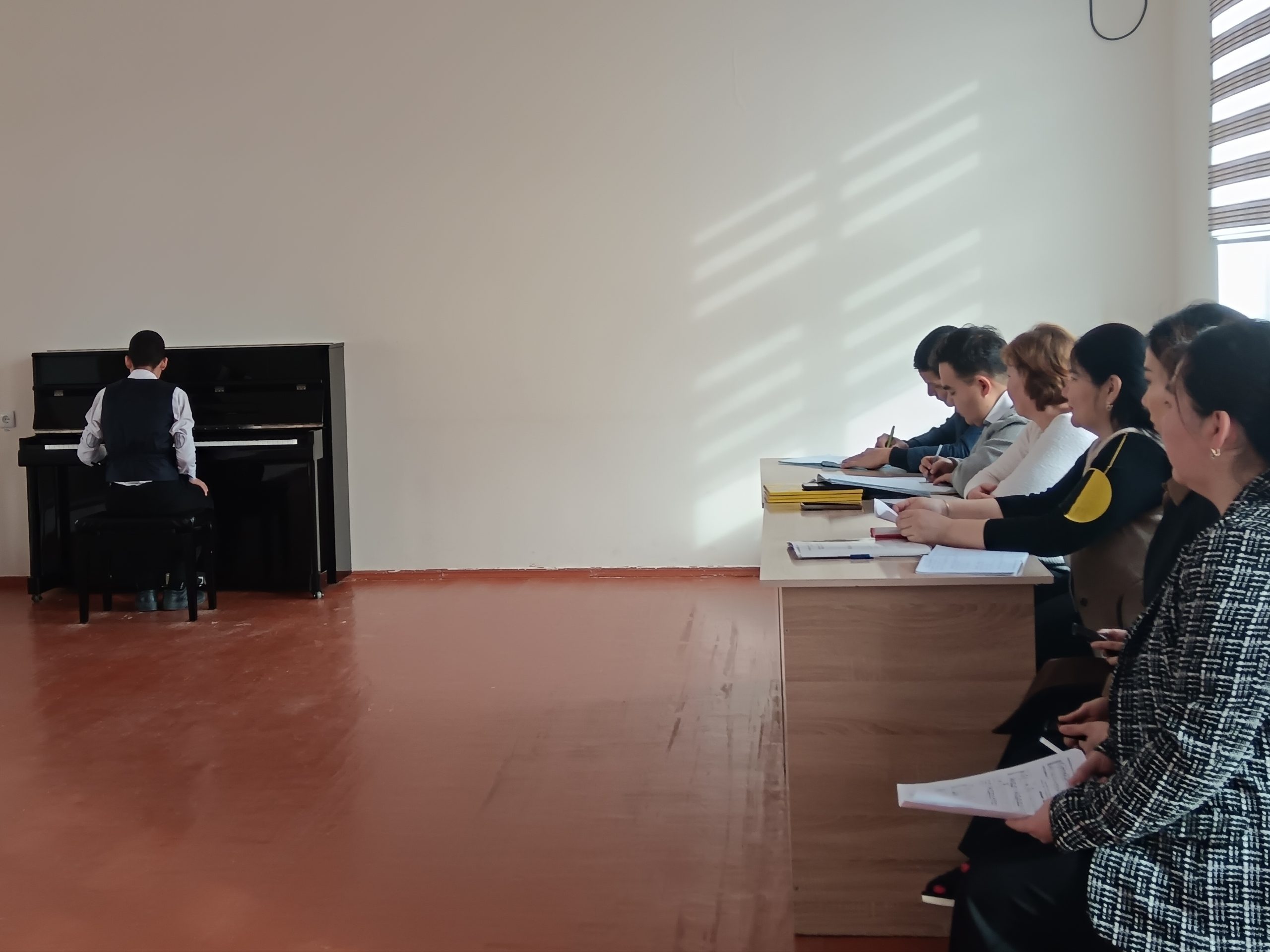 Joriy yilning 17-mart kúni 8-sinf oʻquvchilariga 3-chorak yakunlari bo’yicha «Umumiy fortepiano» fanidan o’tkazilgan imtixonidan lavha. Usı jıldıń 17-mart kúni 8-klass oqıwshılarına 3-sherek juwmaqları boyınsha «Ulıwma fortepiano» páninen ótkerilgen imtixanınan kórinis.