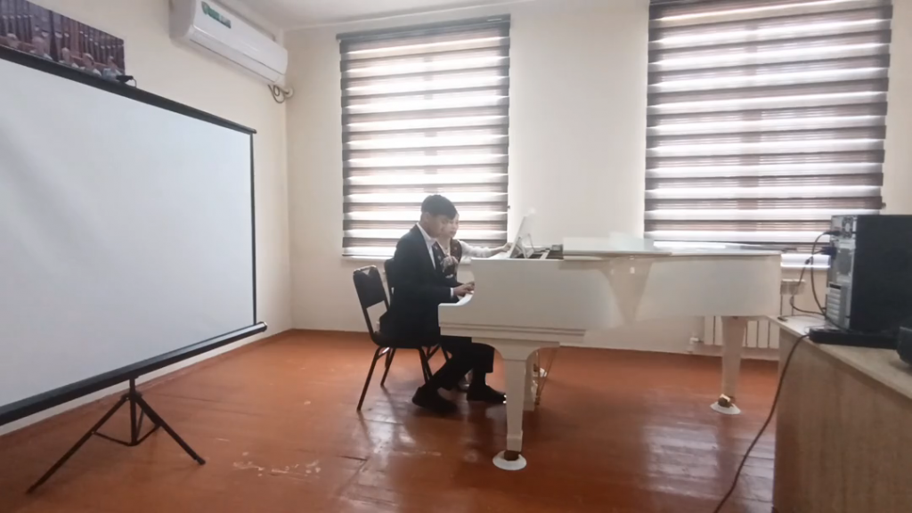 Joriy yilning 24-aprel kuni maktab-internati umumiy fortepiano fani o’qituvchisi Amangul Razakova tomonidan 10-sinf o’quvchisiga o’tkazilgan «Ochiq darsi»dan qısqacha video lavha.