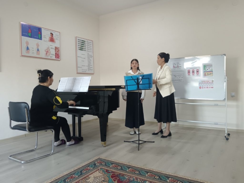 Joriy yilning 14-oktyabr kuni maktab-internati «Akademik xonandalik» yo’nalishi mutaxassislik sinfi fani o’qituvchisi Jiyemuratova Mexriban tomonidan o’tkazilgan «Ochiq darsi»dan lavha.